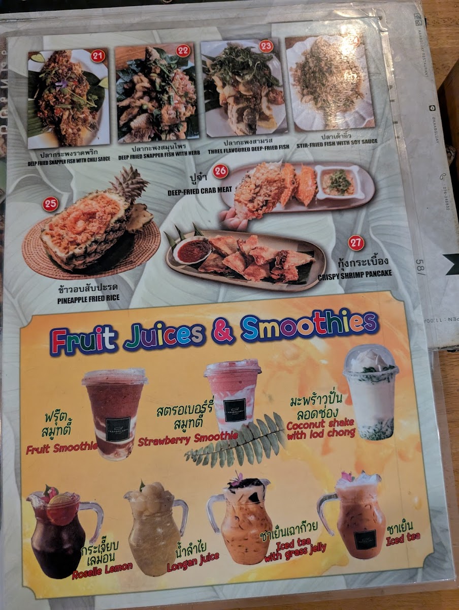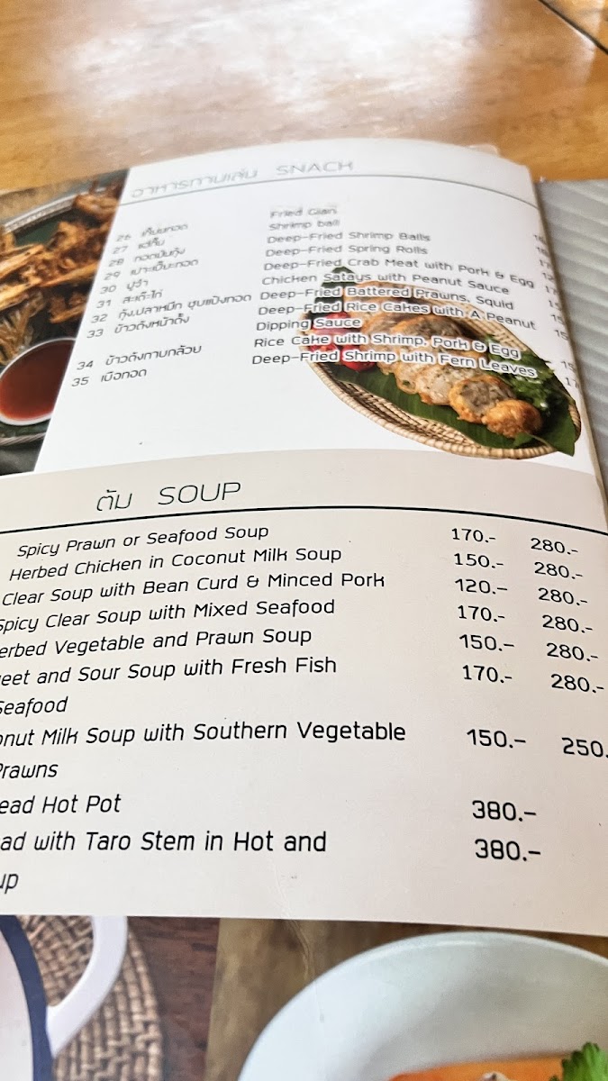 On the menu, you’ll find a range of hearty and well-loved choices such as sticky rice with ripe mango, fragrant pineapple fried rice, and Pad Thai with shrimp. Regional dishes like crab curry with vermicelli and Thai fish organs sour soup provide a deeper taste of local cuisine. Light vegetable dishes and flavorful seafood options complement the richer plates, reflecting the balance typical in Thai home cooking.