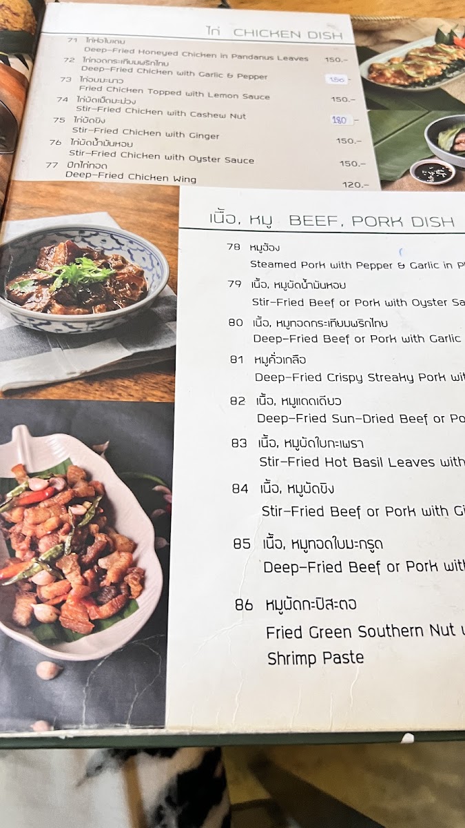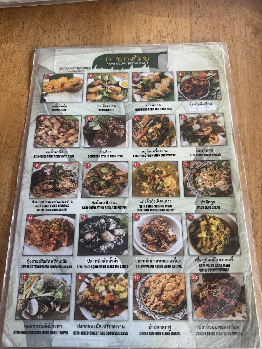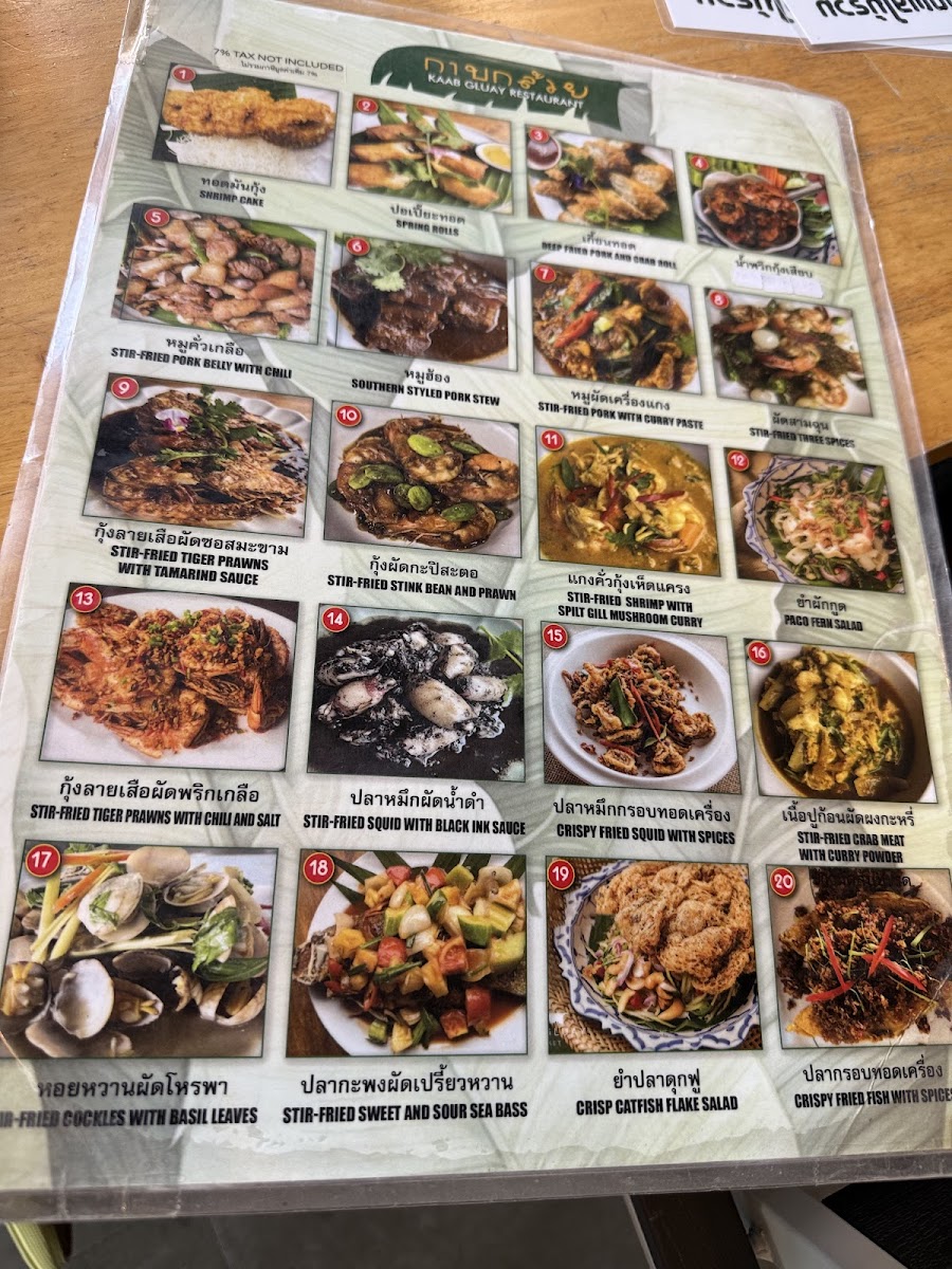 Kaab Gluay offers a straightforward and comforting menu rooted in authentic Southern Thai flavors. The selection includes familiar dishes and traditional specialties, making it a welcoming spot for family meals or casual dining throughout the day.